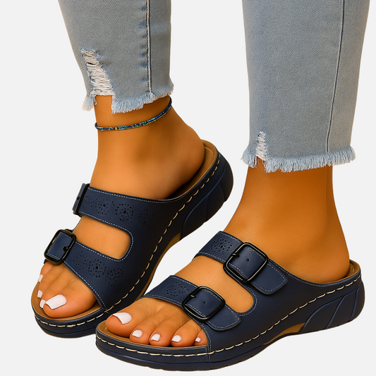Women’s Comfort Sandals – Slip On Buckle Slides
