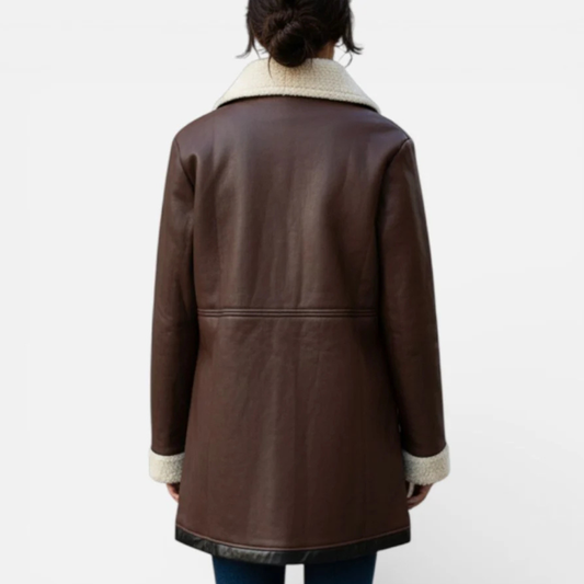 Women's Faux Leather Parka Coat - Warm Sherpa Lined Aviator Jacket
