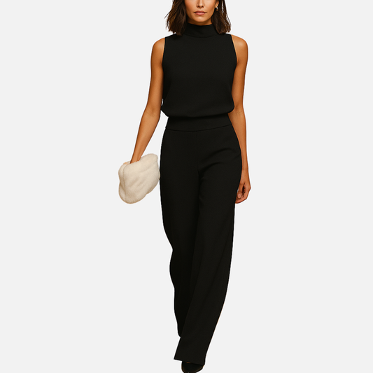 Women's High-Waisted Wide-Leg Jumpsuit - Sleeveless Mock Neck Suit