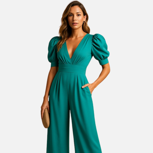 Women’s Elegant Wide Jumpsuit – Deep V-Neck