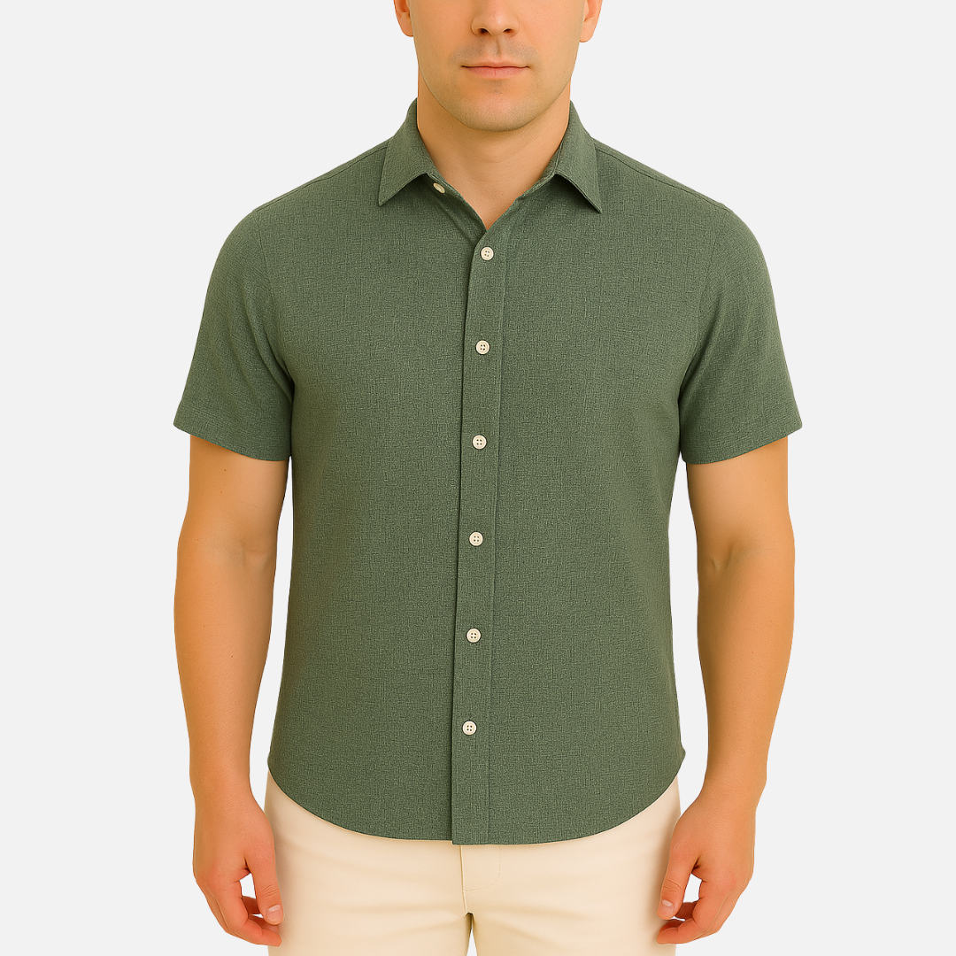 Stay cool and stylish in this short-sleeved linen shirt, designed for breathable comfort and effortless summer fashion. The blend of natural cotton and linen ensures a soft feel with excellent airflow, keeping you fresh on warm days. With its timeless design, this shirt is perfect for casual outings, vacations, or smart-casual events.