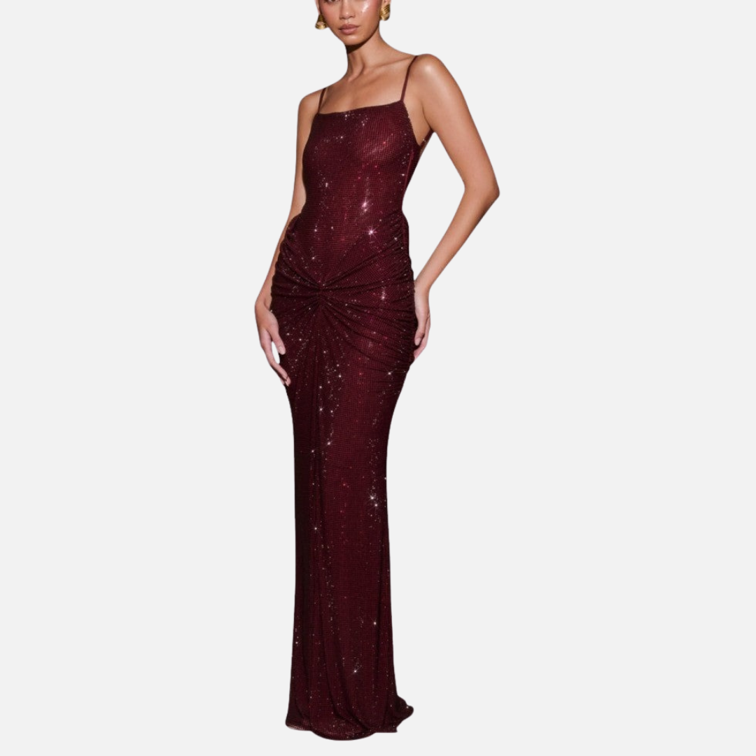 Turn heads in this stunning women’s wine sequin maxi dress, designed with delicate spaghetti straps and a flattering bodycon silhouette. Featuring shimmering sequins and elegant ruching detail, this glamorous evening gown is perfect for formal events, parties, weddings, and special occasions. Elevate your evening style with this timeless, figure-enhancing statement dress.