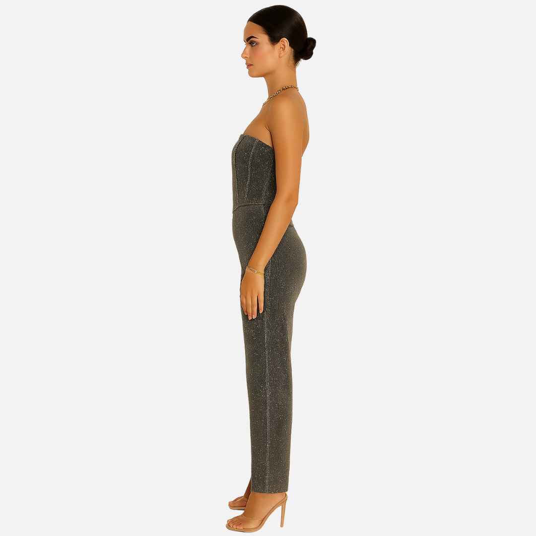Shine with confidence in this women’s glittering jumpsuit set, featuring high-waist jeans paired with a chic matching top. Designed with a flattering fit and sparkling finish, this 2-piece set is perfect for parties, nights out, or fashion-forward streetwear looks. The high-waist jeans elongate the legs while the glittering details add a touch of glamour, making this set a must-have statement outfit.