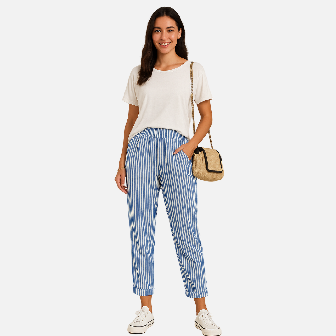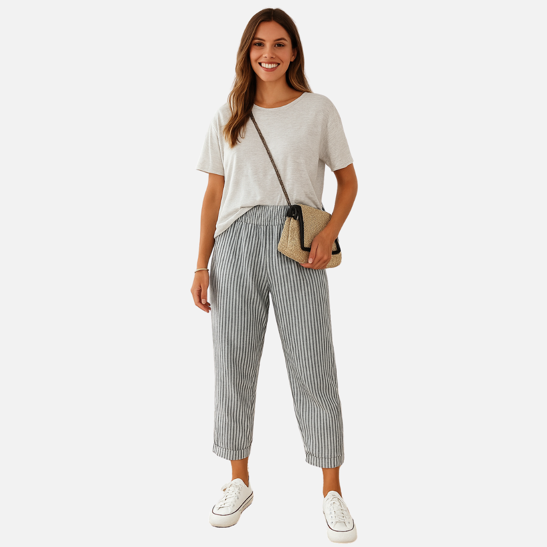 These breathable, lightweight pants are made from a soft linen cotton blend that keeps you cool and comfortable all day long. Designed with a relaxed fit, adjustable drawstring waist, and functional side pockets, they combine easygoing comfort with everyday versatility.